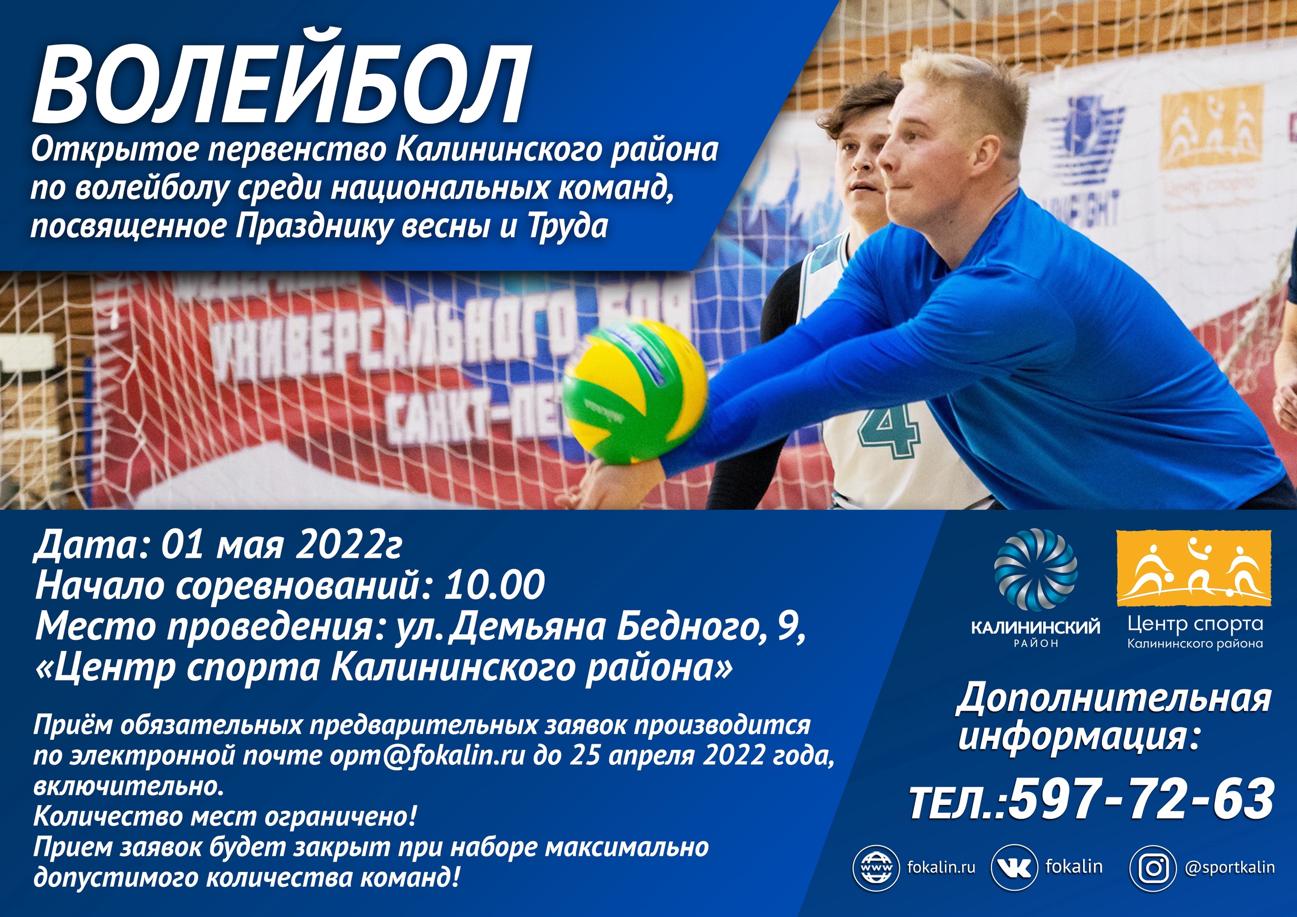 1 мая на базе Центра спорта Калининского района состоится Открытое первенство Калининского района по волейболу